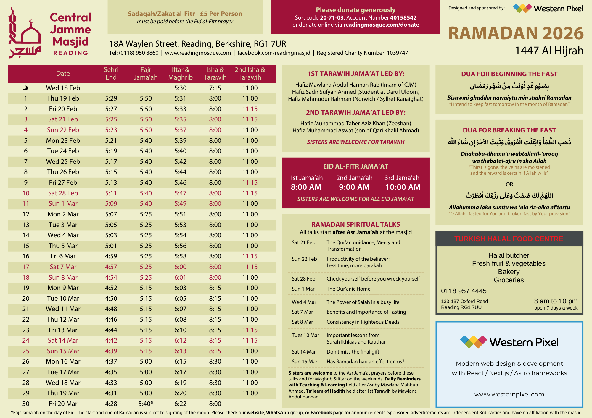 Downloadable Prayer Timetables